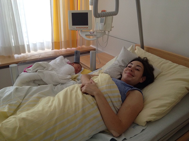 Die ersten Tage sind vergangen und schon Wahnsinn was sich da binnen Stunden tut. Die ersten Besucher waren auch schon hier und da wir am ersten Tag aufgrund Überfüllung zu den Scheintoten auf Stock 5 verlegt wurden (Originalkommentar des Professors 🙂 haben wir jetzt ein Zimmer das sich nach Lufthansa Lounge anfühlt. (Da ich mir jeden abend unten im Bistro Saitenwürste hole, kommt das dem ganzen sehr nahe :-). Daphi geht es auch den Umständen entsprechend gut. Sie macht so vieles spontan richtig und gut da merkt man halt die Steinbach´sche Großfamilie. (Danke Jael, dass Du die kleine Schwester warst/bist 😉 ). Morgen geht´s dann nach Hause und dann sind wir mal gespannt wie die Nächte so werden. Hier im Krankenhaus hat man 1x Wickeln pro Nacht frei und Daphi kann wenigstens ein paar Stunden schlafen. Alles wird sich ändern und das ist auch gut so. Wir sind gespannt auf alles was kommt. Vielen Dank für die vielen Glückwünsche die wir schon erhalten haben. Schön zu wissen, dass sich soviele mit uns freuen.