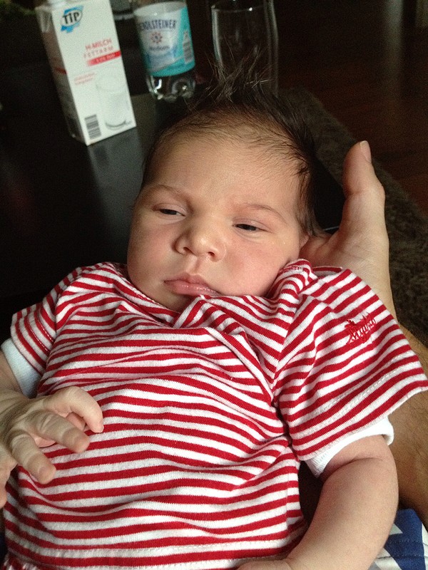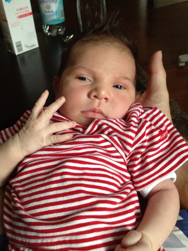 8 Tage ist Marla nun auf der Welt und jeden Tag meint man was neues an ihr zu bemerken. Wie sie sich schon verändert hat … Bis auf die erste Nacht hatten wir jetzt durchweg verhältnismäßig gute Nächte. Das Wetter und der Lärm durch die Baustellen vorm Haus machen uns mehr zu schaffen als unsere Kleine. Marla spielt nämlich echt gut mit. Wir waren nun auch zum ersten Mal richtig “draußen” und mit der Frischluft gehen uns dann abends um 9 alle Lichter aus. Mira hat uns super durch die erste Woche begleitet und die Kleine immer fachkundig beäugt und gewogen. Der Nabel ist schon abgefallen und wenn sie weiter so zunimmt und wächst melden wir sie ab nächsten Monat im Kindergarten an 🙂