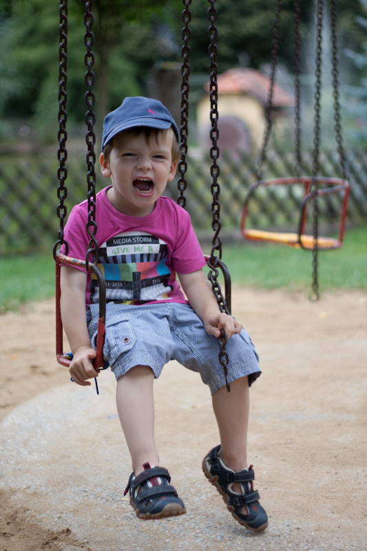 Letzten Donnerstagabend sind Daniel, Manuela, Ben und Ole aus Hamburg angereißt und haben mit mir das Wochenende verbracht. Daniel und Manuela sind wahre ‘Einschläferkünstler’ und so habe ich oft nicht bemerkt, dass ich wieder eingeschlafen war. Zusammen mit Ben und Ole bin ich dann in den Pfauengarten, wo wir viele Tiere bestaunen konnten, aber auch Auto- und Kettenkarusell fahren durften (ich und Ole mußten leider von der Ferne zuschauen). Am Tag drauf war es nochmal so richtig schön warm und wir sind alle ins Freibad. Das geplätscher von dem Wasser war für mich wieder so beruhigend, dass ich doch glatt wieder eingeschlafen war.