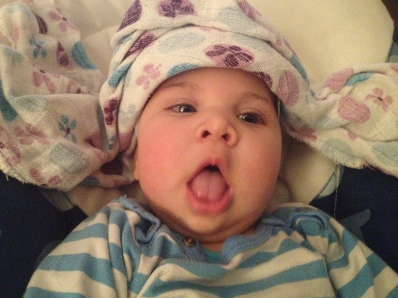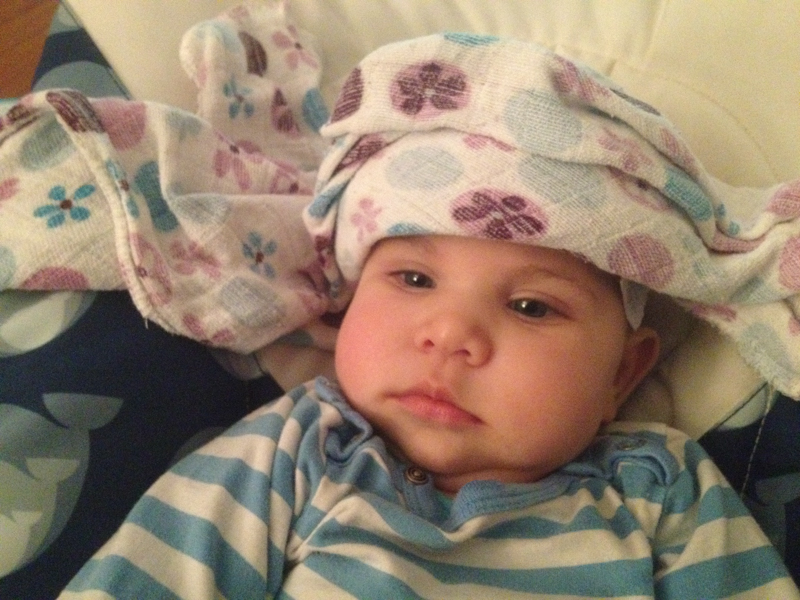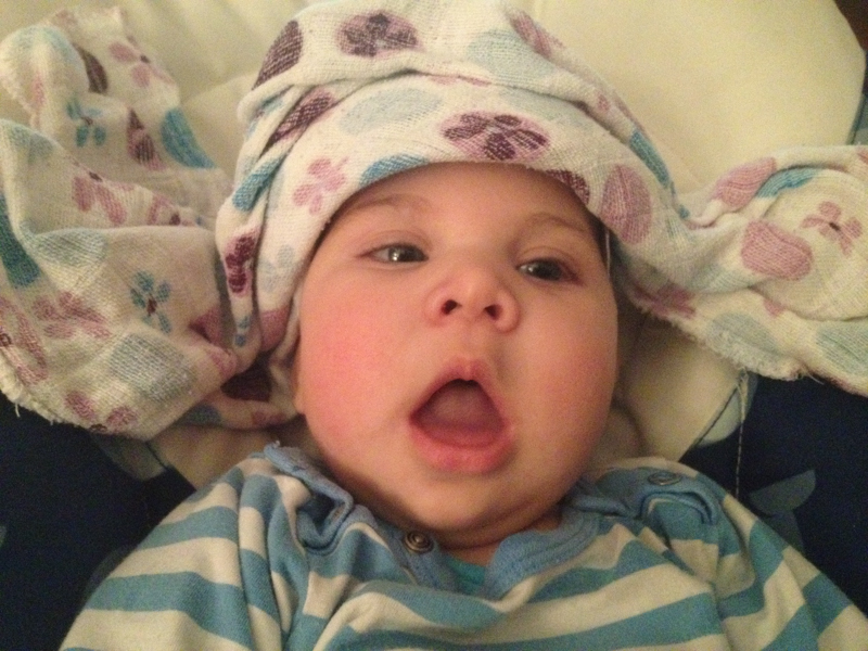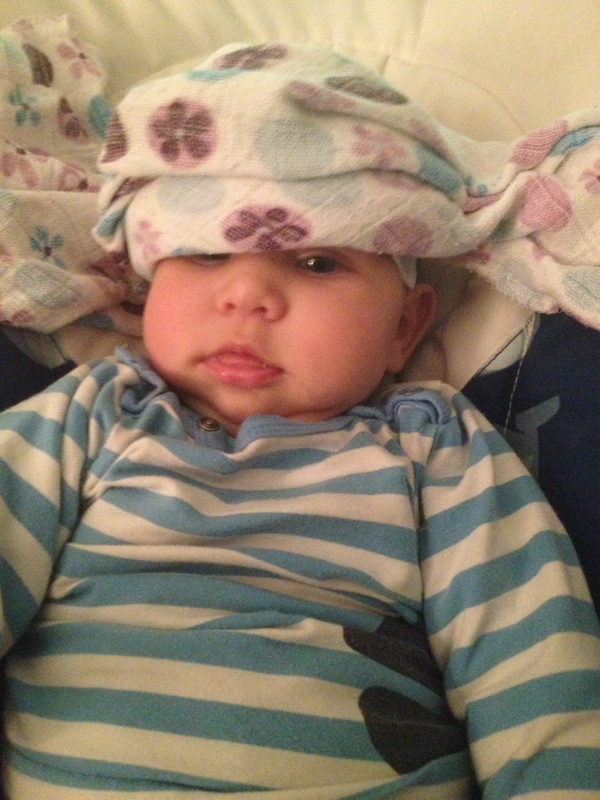 Die Mama und der Papa haben immer so ein Tuch über der Schulter aber jetzt habe ich es genommen und für mich entdeckt. Damit kann man so schön kuscheln und man kann es sich über die Augen legen dann kann man in Ruhe schlafen, da lassen einen dann die Erwachsenen mal in Ruhe 😉 Also Mama und Papa her mit dem Windeltuch!