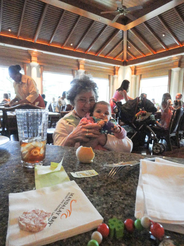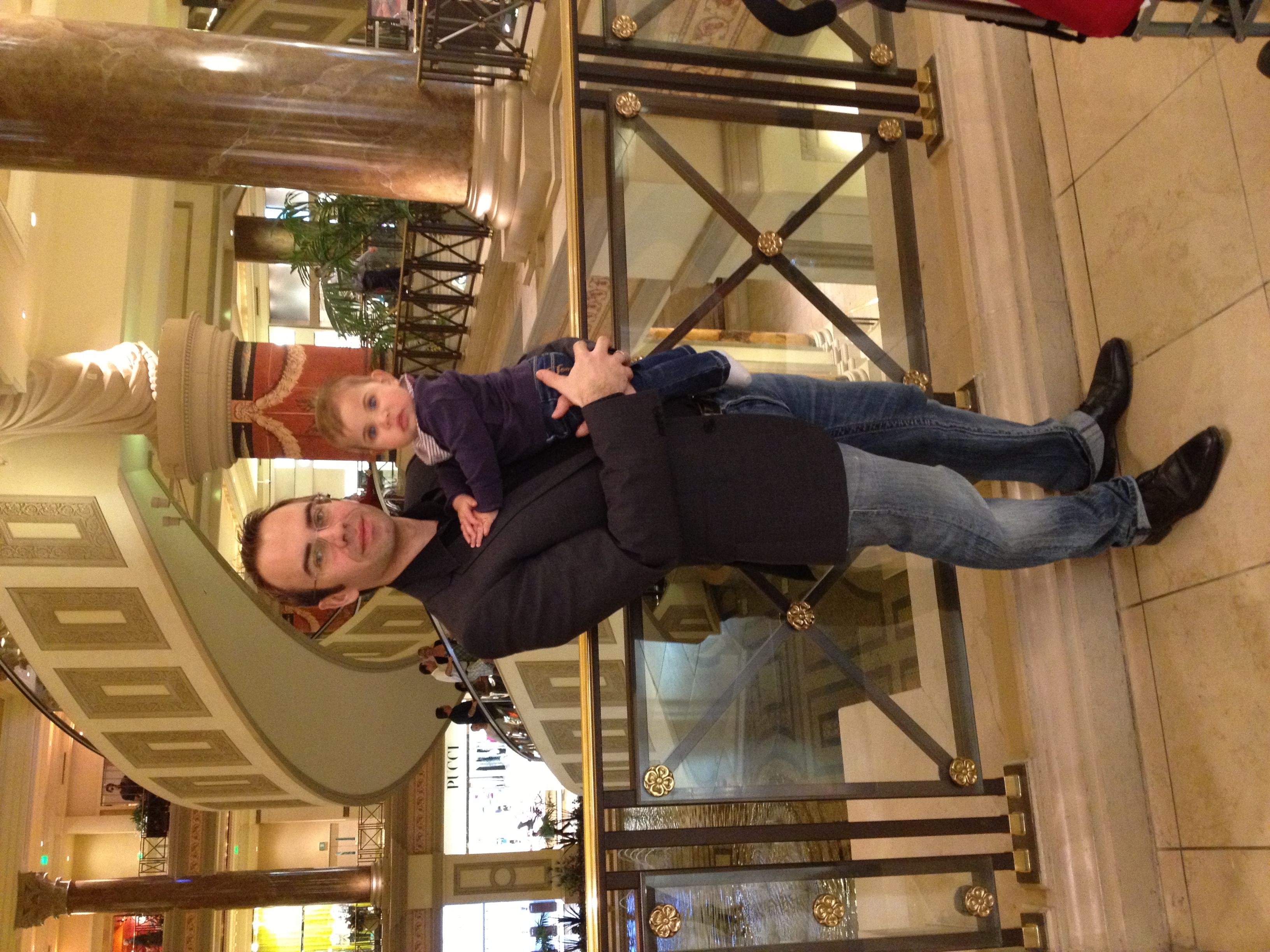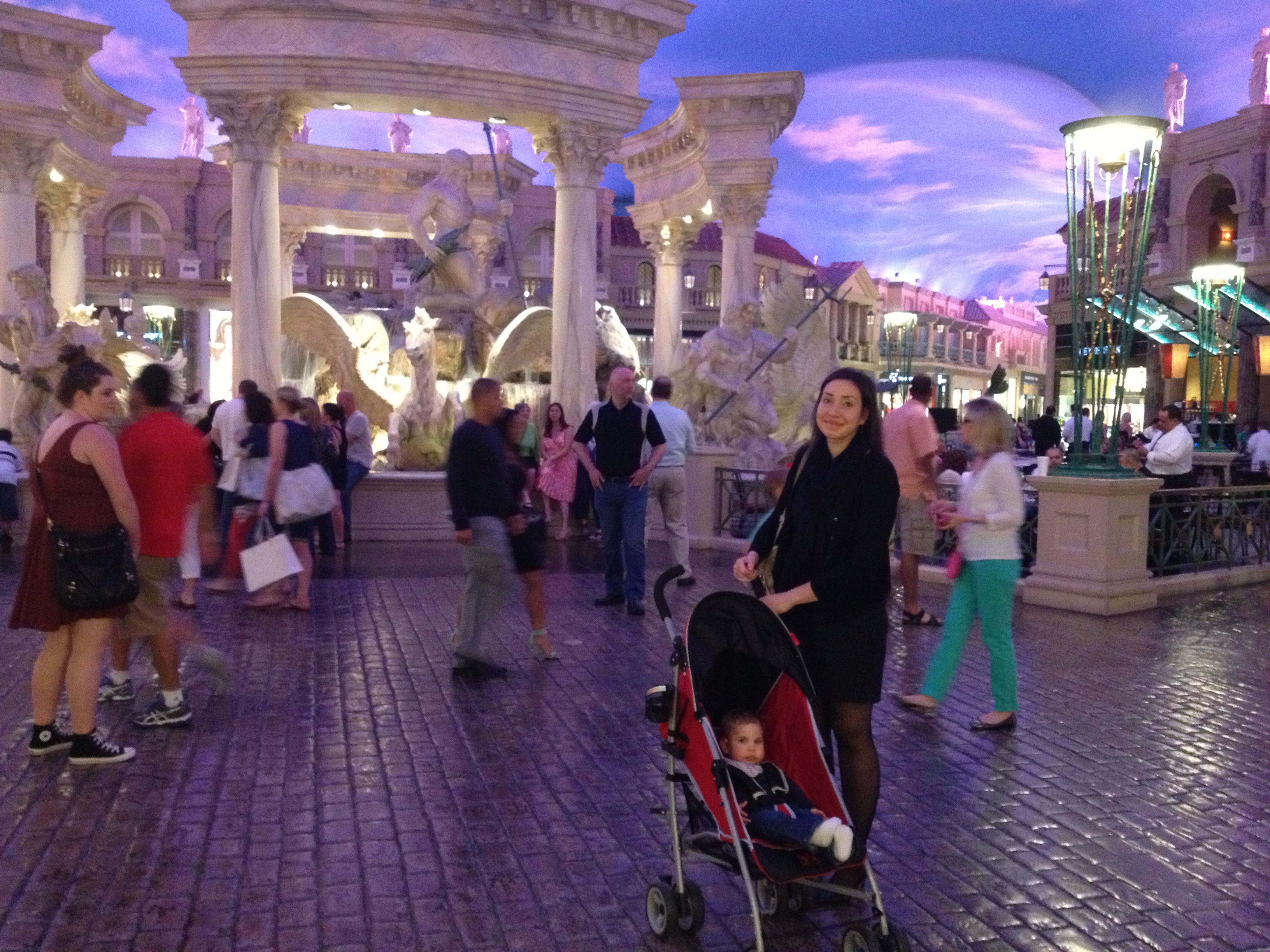 Dann war ich auch mit im Mandalay Bay und fast hätte ich es geschafft zu spielen da mich die Mama neben eine Maschine abgestellt hat, aber kaum hatte ich mich versehen waren wir schon wieder auf dem Weg weiter. Im Trump war ich dann im Schwimmbad und im Venetian war ich mit Anna und Alexander Gondel fahren. Im Wynn hatte ich dann mit Mama und Papa noch gefrühstückt, mmhh… gab lecker Banane und mit Henrik waren wir noch an einem Abend italienisch essen. Eines Abends sind wir auch mit dem Shuttle vom Trump zum Forum gefahren, dort habe ich im Planet Hollywood bei Bruce Willis gesessen, aber irgendwie hat der sich nicht gerührt und gesagt hat er auch nichts, mmhh.. wohl nicht so der Gesprächige.