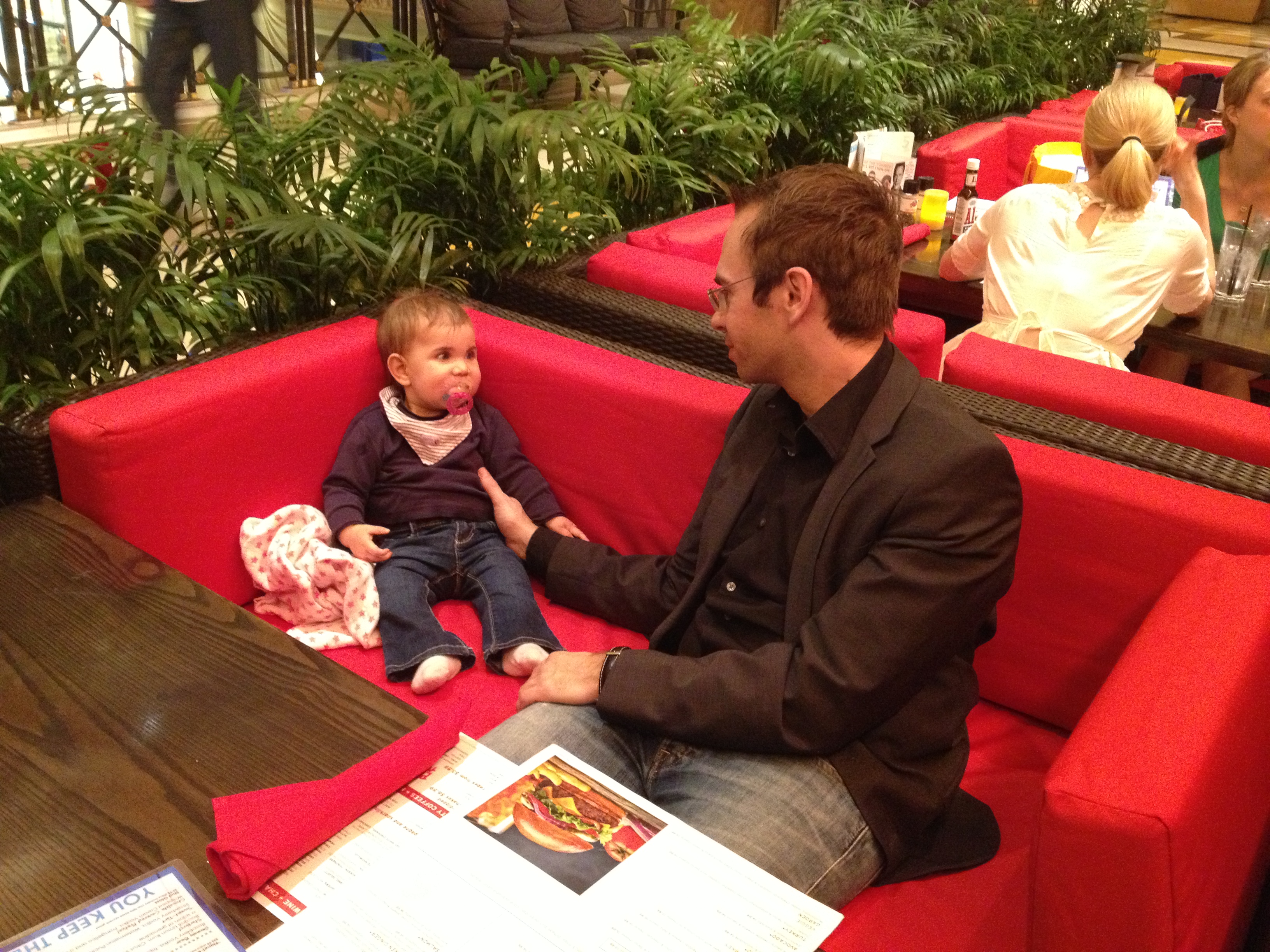 WAHNSINN am 28.3.2013 bin ich mit der Mama nach Frankfurt um mit einem großen Flieger nach Las Vegas zu fliegen. Im Flugzeug hatte ich meine Babyschale ich der ich viel gespielt und eher weniger geschlafen habe. Geschlafen habe ich auf der Mama während sie einen der gezeigten Filme schauen wollte, da war es dann warm und kuschelig. Neben uns waren zwei Männer die ich im handumdrehen um den Finge gewickelt habe. Ich durfte dann später auch mit meinen angeschlabberten Fingern die Uhren der Männer erkunden. Da es dort auch so eng war hatte leider einer mal mein Essen abbekommen, naja was soll ich sagen es war halt eng… In Las Vegas angekommen hat uns Oma und Opa dann abgeholt und ich und die Mama sind dann nach einem guten Essen ins Bett gefallen.